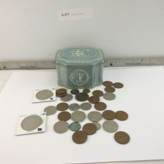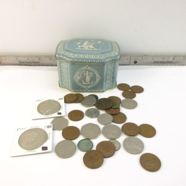 Current Bid: $7.00 [Refresh Price]YOU WILL NEED TO REFRESH THIS PAGE TO SEE UPDATED BID (Log in and this will update automatically) You must LOG IN or REGISTER to see this full page auction listing and bid. Auction is Over Winning Bid Amount: $7.00 **Lot Details: (LOT: A377) - Lot of Vintage British Coins incl. 2 Commemorative WINSTON CHURCHILL Crown Coins in Imitation Wedgewood Tea Tin Log in to add this lot to your watch list or place a bid |