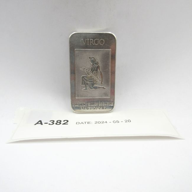 Current Bid: $45.00 [Refresh Price]YOU WILL NEED TO REFRESH THIS PAGE TO SEE UPDATED BID (Log in and this will update automatically) You must LOG IN or REGISTER to see this full page auction listing and bid. Auction is Over Winning Bid Amount: $45.00 **Lot Details: (LOT: A382) - Vintage Silver Bar: National Mint Canada Zodiac series. Virgo. 1 Troy ounce .999 fine silver. Log in to add this lot to your watch list or place a bid |