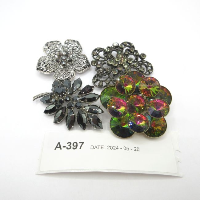 Current Bid: $7.00 [Refresh Price]YOU WILL NEED TO REFRESH THIS PAGE TO SEE UPDATED BID (Log in and this will update automatically) You must LOG IN or REGISTER to see this full page auction listing and bid. Auction is Over Winning Bid Amount: $7.00 **Lot Details: (LOT: A397) - Broaches: 4 beautiful very sparkly pins. Log in to add this lot to your watch list or place a bid |