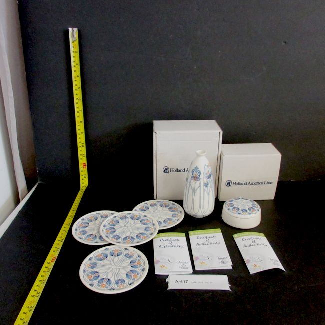 Current Bid: $5.00 [Refresh Price]YOU WILL NEED TO REFRESH THIS PAGE TO SEE UPDATED BID (Log in and this will update automatically) You must LOG IN or REGISTER to see this full page auction listing and bid. Auction is Over Winning Bid Amount: $5.00 **Lot Details: (LOT: A417) - Three pieces of pottery from the Holland American line made by Royal GOEDEWAAGEN Holland, all three in excellent condition original boxes and come with COA Log in to add this lot to your watch list or place a bid |