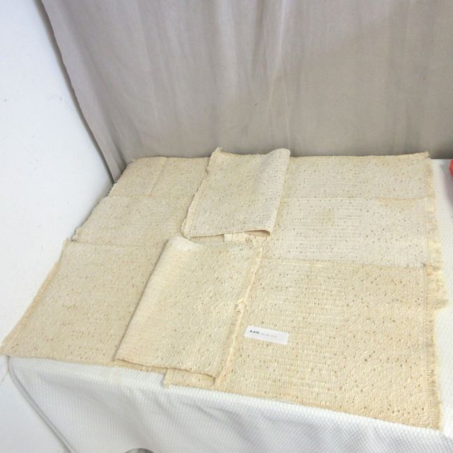 Current Bid: $5.00 [Refresh Price]YOU WILL NEED TO REFRESH THIS PAGE TO SEE UPDATED BID (Log in and this will update automatically) You must LOG IN or REGISTER to see this full page auction listing and bid. Auction is Over Winning Bid Amount: $5.00 **Lot Details: (LOT: A418) - Lot of vintage placemats with golden threads Log in to add this lot to your watch list or place a bid |