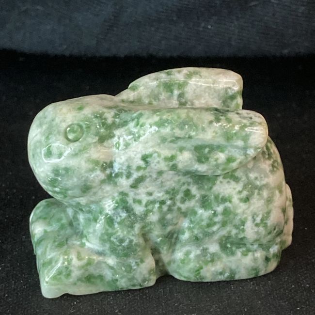 Current Bid: $5.00 [Refresh Price]YOU WILL NEED TO REFRESH THIS PAGE TO SEE UPDATED BID (Log in and this will update automatically) You must LOG IN or REGISTER to see this full page auction listing and bid. Auction is Over Winning Bid Amount: $5.00 **Lot Details: (LOT: A604) - Big eared Bunny Rabbit carved from green moss agate. Hand Carved and polished natural crystal, stone and minerals.so every one is unique. Log in to add this lot to your watch list or place a bid |