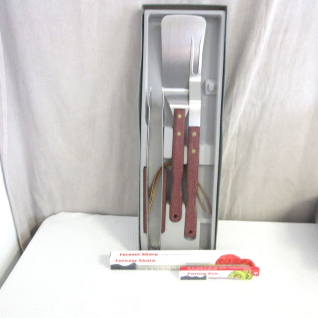 Current Bid: $11.50 [Refresh Price]YOU WILL NEED TO REFRESH THIS PAGE TO SEE UPDATED BID (Log in and this will update automatically) You must LOG IN or REGISTER to see this full page auction listing and bid. Auction is Over Winning Bid Amount: $11.50 **Lot Details: (LOT: B67) - A lot of knives and barbeque tools, look brand new Log in to add this lot to your watch list or place a bid |