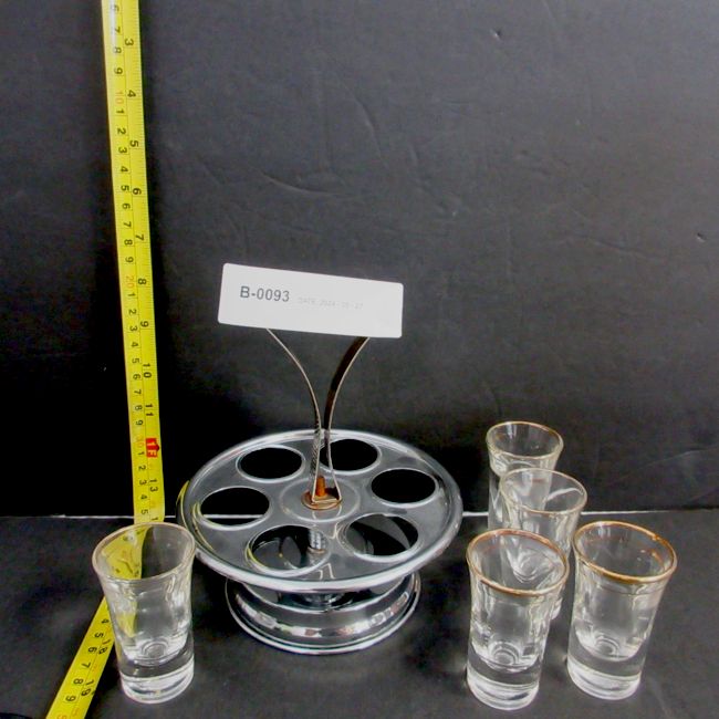 Current Bid: $5.00 [Refresh Price]YOU WILL NEED TO REFRESH THIS PAGE TO SEE UPDATED BID (Log in and this will update automatically) You must LOG IN or REGISTER to see this full page auction listing and bid. Auction is Over Winning Bid Amount: $5.00 **Lot Details: (LOT: B93) - Very modern looking mid century shooter/Shot glass caddy, one glass missing but fairly easy to find a set of 6 matching that works with this. Log in to add this lot to your watch list or place a bid |
