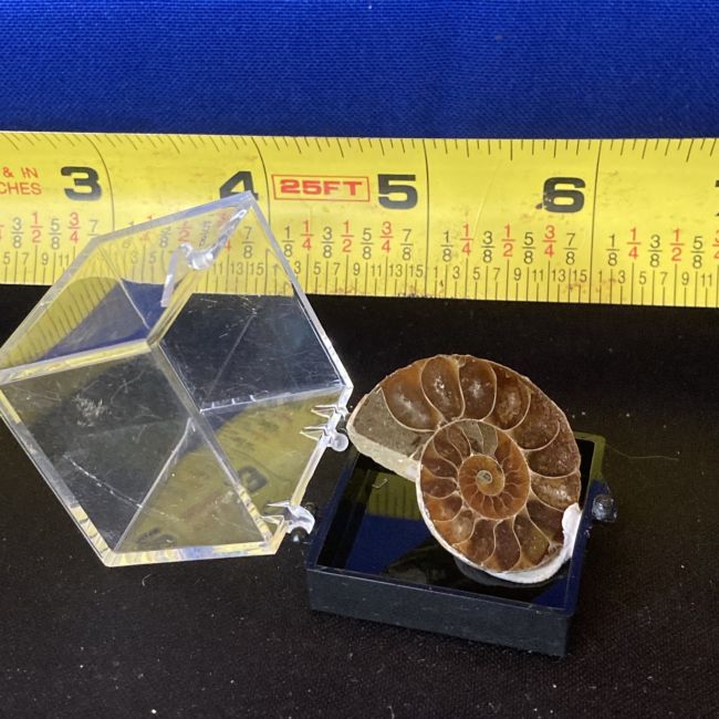 Current Bid: $14.00 [Refresh Price]YOU WILL NEED TO REFRESH THIS PAGE TO SEE UPDATED BID (Log in and this will update automatically) You must LOG IN or REGISTER to see this full page auction listing and bid. Auction is Over Winning Bid Amount: $14.00 **Lot Details: (LOT: B756) - Ammonite Shell Fossil Specimen sliced in half and placed into a specimen display box. This is a small one but really neat. Log in to add this lot to your watch list or place a bid |
