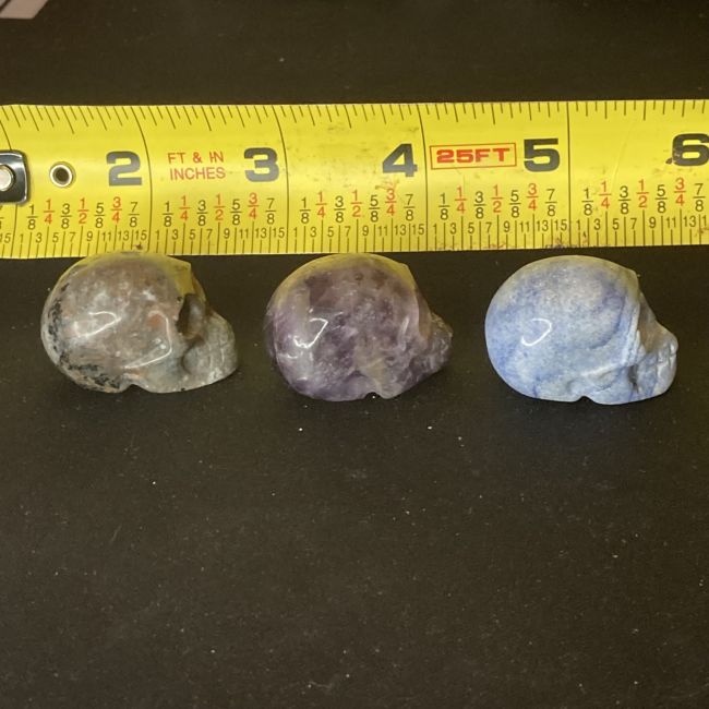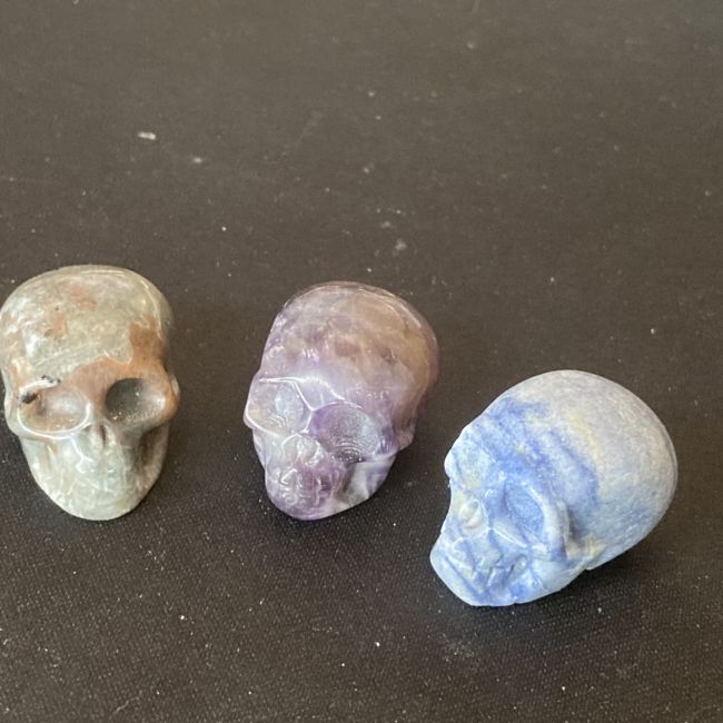 Current Bid: $11.00 [Refresh Price]YOU WILL NEED TO REFRESH THIS PAGE TO SEE UPDATED BID (Log in and this will update automatically) You must LOG IN or REGISTER to see this full page auction listing and bid. Auction is Over Winning Bid Amount: $11.00 **Lot Details: (LOT: B770) - Three crystal carved mini skulls, Blue Aventurine, Dogtooth Amethyst and a red and green jasper one too! Log in to add this lot to your watch list or place a bid |