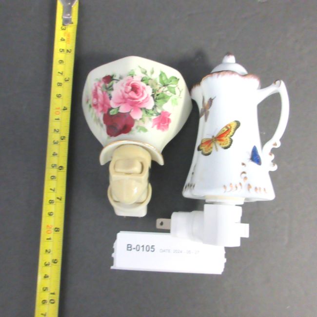 Current Bid: $8.96 [Refresh Price]YOU WILL NEED TO REFRESH THIS PAGE TO SEE UPDATED BID (Log in and this will update automatically) You must LOG IN or REGISTER to see this full page auction listing and bid. Auction is Over Winning Bid Amount: $8.96 **Lot Details: (LOT: B105) - Two-night lights. The cup is made by Formalities and the teapot with butterflies has no markings. No damage. Log in to add this lot to your watch list or place a bid |
