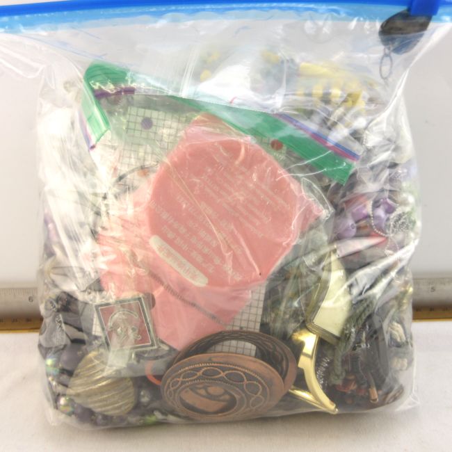 Current Bid: $5.00 [Refresh Price]YOU WILL NEED TO REFRESH THIS PAGE TO SEE UPDATED BID (Log in and this will update automatically) You must LOG IN or REGISTER to see this full page auction listing and bid. Auction is Over Winning Bid Amount: $5.00 **Lot Details: (LOT: B114) - Over 4 pounds of jewelery. Most of it is for crafting only. Log in to add this lot to your watch list or place a bid |