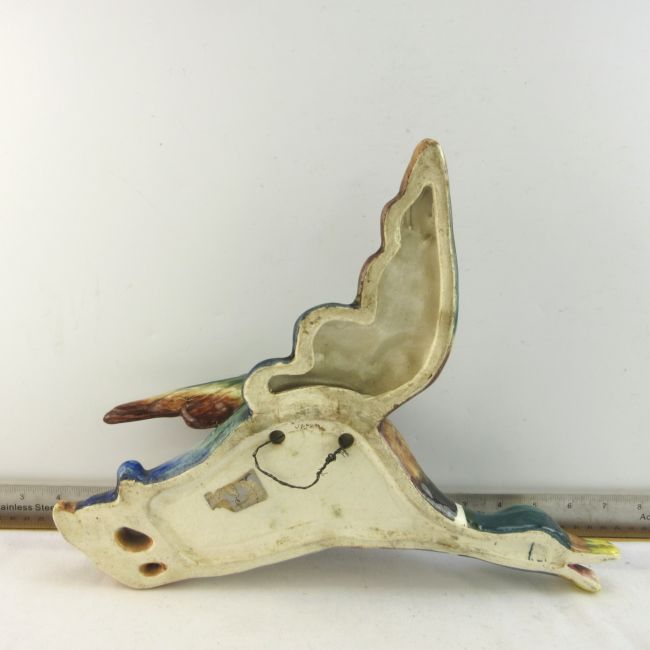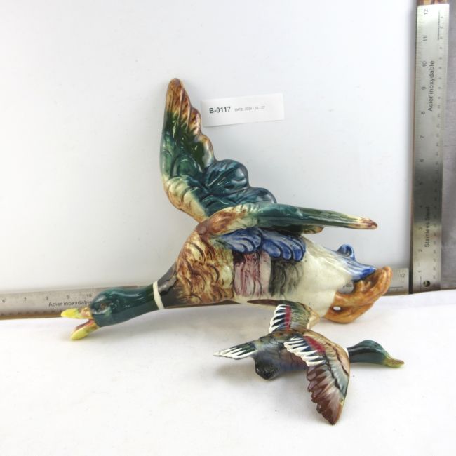Current Bid: $16.00 [Refresh Price]YOU WILL NEED TO REFRESH THIS PAGE TO SEE UPDATED BID (Log in and this will update automatically) You must LOG IN or REGISTER to see this full page auction listing and bid. Auction is Over Winning Bid Amount: $16.00 **Lot Details: (LOT: B117) - Vintage wall hanging ducks. Large one has a pocket where you can add some flowers. It measures 14” long by 10” high. It has some chips on the beak, but it faces the wall. The small one measure 6.5” long by 6... Log in to add this lot to your watch list or place a bid |