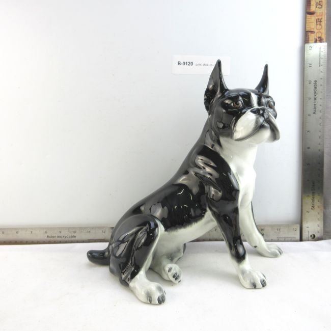Current Bid: $17.00 [Refresh Price]YOU WILL NEED TO REFRESH THIS PAGE TO SEE UPDATED BID (Log in and this will update automatically) You must LOG IN or REGISTER to see this full page auction listing and bid. Auction is Over Winning Bid Amount: $17.00 **Lot Details: (LOT: B120) - A high end ceramic French Bulldog. Hand painted, marked Made In Italy and numbered on the underside. A few very small touch ups that can only be seen under extremely close inspection. Just over 10.5” tall. Log in to add this lot to your watch list or place a bid |