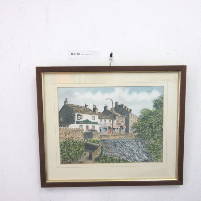 Current Bid: $5.00 [Refresh Price]YOU WILL NEED TO REFRESH THIS PAGE TO SEE UPDATED BID (Log in and this will update automatically) You must LOG IN or REGISTER to see this full page auction listing and bid. Auction is Over Winning Bid Amount: $5.00 **Lot Details: (LOT: B130) - A highly detailed original watercolour painting. “The Weir, Stakes Beck Silsden” by the talented N. Sharp. Signed in lower right corner. Approximately 15.5” x 13.25” including the frame. Log in to add this lot to your watch list or place a bid |