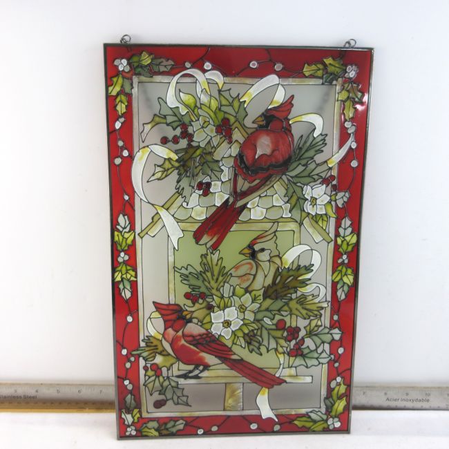 Current Bid: $122.00 [Refresh Price]YOU WILL NEED TO REFRESH THIS PAGE TO SEE UPDATED BID (Log in and this will update automatically) You must LOG IN or REGISTER to see this full page auction listing and bid. Auction is Over Winning Bid Amount: $122.00 **Lot Details: (LOT: B132) - A very nice painted glass Cardinals sun catcher. Complete with chain, ready to hang. Approximately 16” x 10” including the frame. Log in to add this lot to your watch list or place a bid |