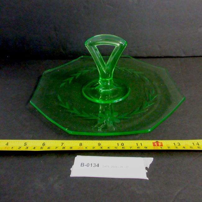 Current Bid: $11.78 [Refresh Price]YOU WILL NEED TO REFRESH THIS PAGE TO SEE UPDATED BID (Log in and this will update automatically) You must LOG IN or REGISTER to see this full page auction listing and bid. Auction is Over Winning Bid Amount: $11.78 **Lot Details: (LOT: B134) - A very cool vintage uranium glass handled and etched desert/serving tray. Glows brightly under UV/blacklight. Very good condition for its age. Log in to add this lot to your watch list or place a bid |
