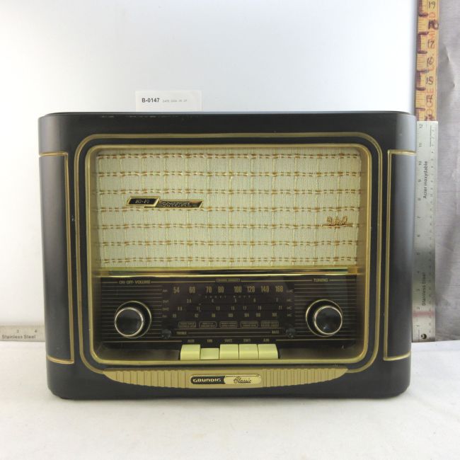 Current Bid: $52.00 [Refresh Price]YOU WILL NEED TO REFRESH THIS PAGE TO SEE UPDATED BID (Log in and this will update automatically) You must LOG IN or REGISTER to see this full page auction listing and bid. Auction is Over Winning Bid Amount: $52.00 **Lot Details: (LOT: B147) - Grundig Classic 960 Am/Fm short wave hi-fi anniversary radio. Also has an auxiliary input jack. Tested and working. Log in to add this lot to your watch list or place a bid |
