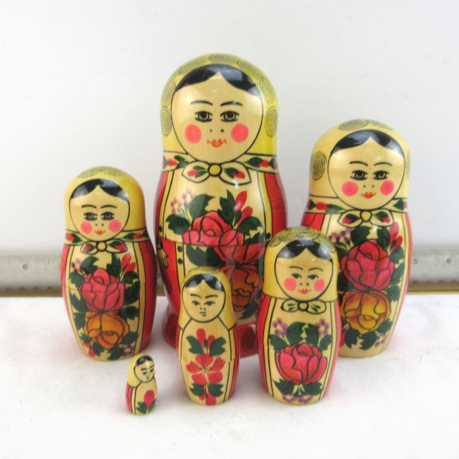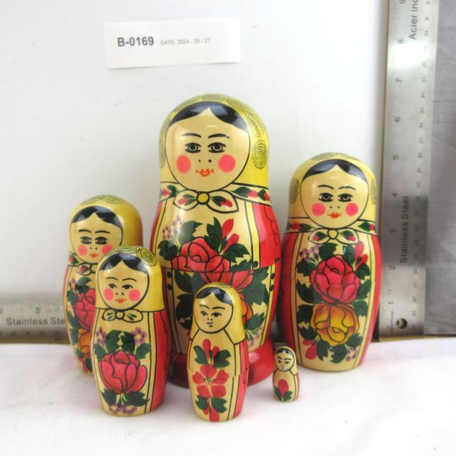 Current Bid: $26.00 [Refresh Price]YOU WILL NEED TO REFRESH THIS PAGE TO SEE UPDATED BID (Log in and this will update automatically) You must LOG IN or REGISTER to see this full page auction listing and bid. Auction is Over Winning Bid Amount: $26.00 **Lot Details: (LOT: B169) - Vintage made in the USSR Nesting Dolls , beautifully painted details Log in to add this lot to your watch list or place a bid |