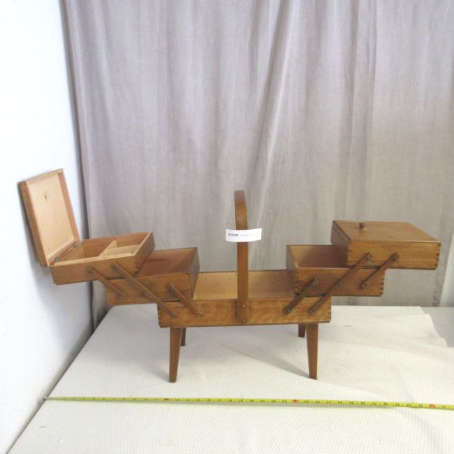 Current Bid: $13.00 [Refresh Price]YOU WILL NEED TO REFRESH THIS PAGE TO SEE UPDATED BID (Log in and this will update automatically) You must LOG IN or REGISTER to see this full page auction listing and bid. Auction is Over Winning Bid Amount: $13.00 **Lot Details: (LOT: B192) - MCM Accordion Wooden Sewing Floor Chest all dovetailed Log in to add this lot to your watch list or place a bid |