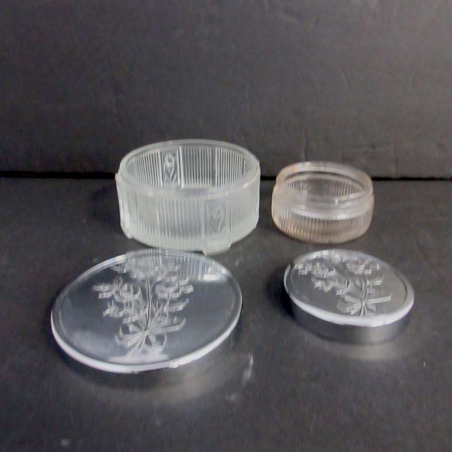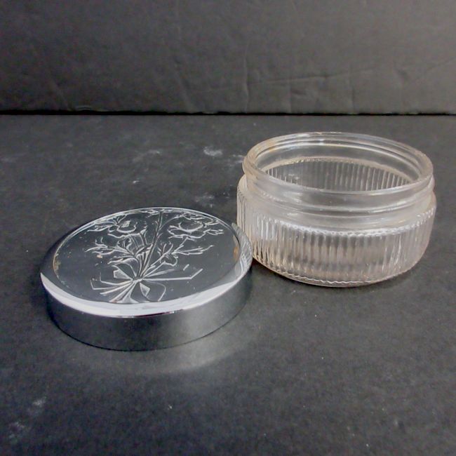 Current Bid: $9.00 [Refresh Price]YOU WILL NEED TO REFRESH THIS PAGE TO SEE UPDATED BID (Log in and this will update automatically) You must LOG IN or REGISTER to see this full page auction listing and bid. Auction is Over Winning Bid Amount: $9.00 **Lot Details: (LOT: B194) - 2 MCM Ribbed Dresser Glass Jars with original Flower Bouquet Lids in excellent condition Log in to add this lot to your watch list or place a bid |