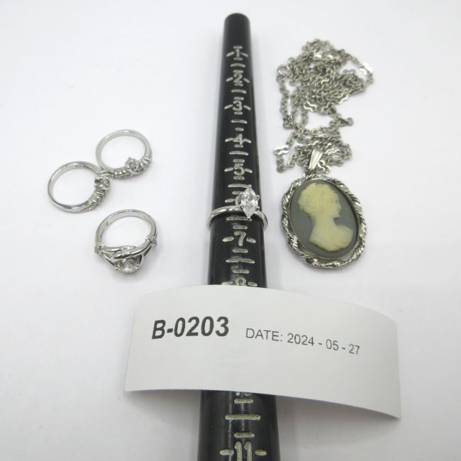 Current Bid: $5.00 [Refresh Price]YOU WILL NEED TO REFRESH THIS PAGE TO SEE UPDATED BID (Log in and this will update automatically) You must LOG IN or REGISTER to see this full page auction listing and bid. Auction is Over Winning Bid Amount: $5.00 **Lot Details: (LOT: B203) - 5 pcs, 4 Sparkling Rings Plus Blue Cameo Necklace Log in to add this lot to your watch list or place a bid |