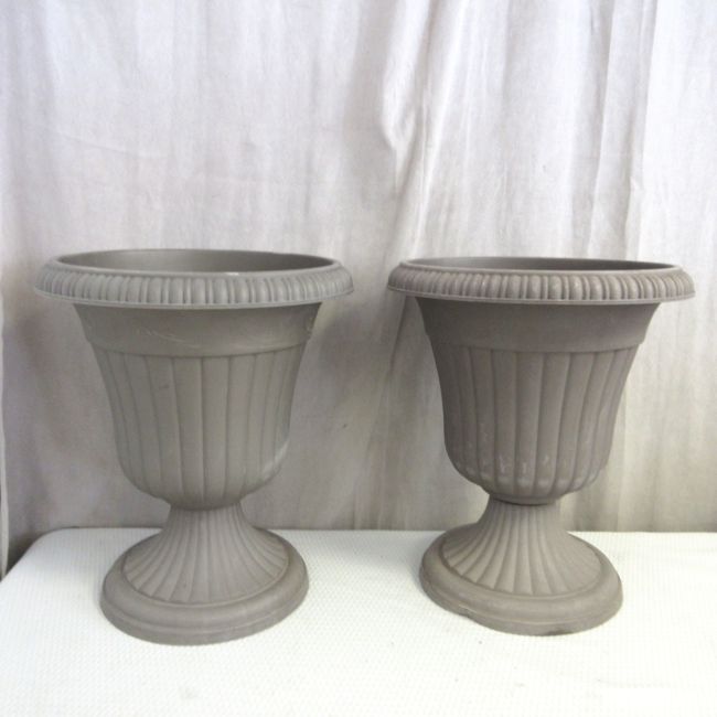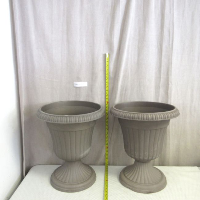 Current Bid: $22.00 [Refresh Price]YOU WILL NEED TO REFRESH THIS PAGE TO SEE UPDATED BID (Log in and this will update automatically) You must LOG IN or REGISTER to see this full page auction listing and bid. Auction is Over Winning Bid Amount: $22.00 **Lot Details: (LOT: B211) - Two Planter Urns, 17" high with a top opening 15" round Plastic Log in to add this lot to your watch list or place a bid |