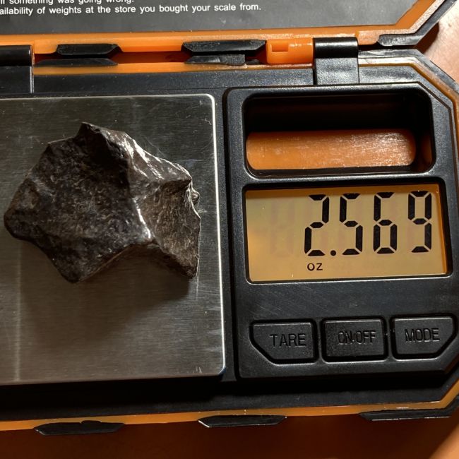 Current Bid: $122.00 [Refresh Price]YOU WILL NEED TO REFRESH THIS PAGE TO SEE UPDATED BID (Log in and this will update automatically) You must LOG IN or REGISTER to see this full page auction listing and bid. Auction is Over Winning Bid Amount: $122.00 **Lot Details: (LOT: B774) - Chondrite METEORITE purchased years ago by collector at the FOSSIL CARTEL in Portland USA. This weighs 2.56 OUNCES. Originally purchased for 145.00 USD old sticker still on back. Log in to add this lot to your watch list or place a bid |