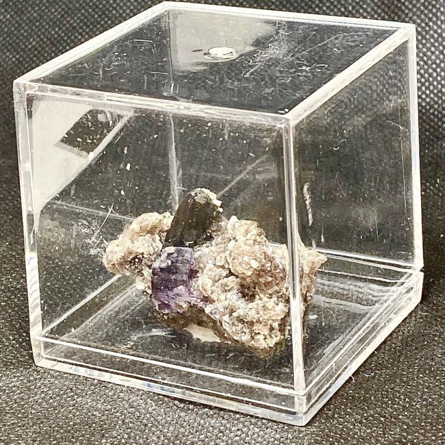 Current Bid: $11.02 [Refresh Price]YOU WILL NEED TO REFRESH THIS PAGE TO SEE UPDATED BID (Log in and this will update automatically) You must LOG IN or REGISTER to see this full page auction listing and bid. Auction is Over Winning Bid Amount: $11.02 **Lot Details: (LOT: B778) - Black ferberite with a purple gemmy fluorite all on muscovite. Lot going on with this one. Nice specimen and in a 2x2 inch plexiglass display box Log in to add this lot to your watch list or place a bid |