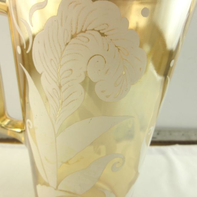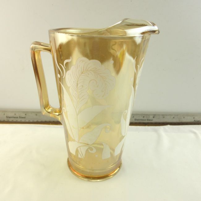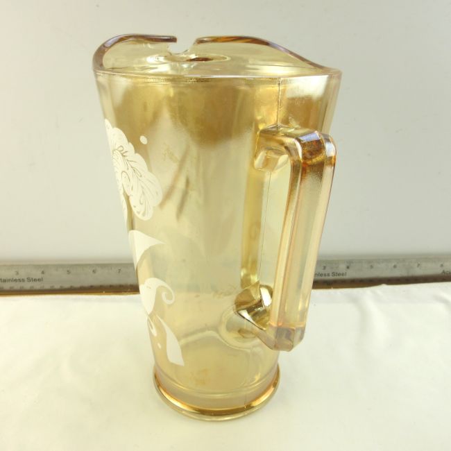 Current Bid: $13.00 [Refresh Price]YOU WILL NEED TO REFRESH THIS PAGE TO SEE UPDATED BID (Log in and this will update automatically) You must LOG IN or REGISTER to see this full page auction listing and bid. Auction is Over Winning Bid Amount: $13.00 **Lot Details: (LOT: B233) - Depression era carnival gold glass ice lip pitcher, excellent condition, absolutely no chips/ cracks etc, 8 3/4" (h), dated 1940's, marigold iridescent color, floral pattern, 64 oz, nice thick glass, the perfe... Log in to add this lot to your watch list or place a bid |