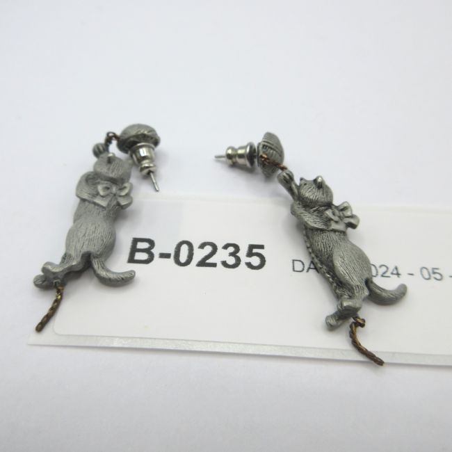 Current Bid: $7.00 [Refresh Price]YOU WILL NEED TO REFRESH THIS PAGE TO SEE UPDATED BID (Log in and this will update automatically) You must LOG IN or REGISTER to see this full page auction listing and bid. Auction is Over Winning Bid Amount: $7.00 **Lot Details: (LOT: B235) - Brand new pair of pewter dangling cat earrings, lots of detail, cat is wearing ribbon bow tie and is climbing up a moveable chain to reach the ball of yarn at the top, chain is moveable underneath the chain as well, ... Log in to add this lot to your watch list or place a bid |