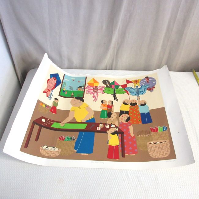 Current Bid: $9.00 [Refresh Price]YOU WILL NEED TO REFRESH THIS PAGE TO SEE UPDATED BID (Log in and this will update automatically) You must LOG IN or REGISTER to see this full page auction listing and bid. Auction is Over Winning Bid Amount: $9.00 **Lot Details: (LOT: B240) - Another John Lim titled, signed, dated in pencil on Arches 88 art paper, 1981, "The Kite Shop", 127/275, 30 1/4" (w) x 22 1/4" (h), has tack holes in corners from previous owner but would be unnoticeable ... Log in to add this lot to your watch list or place a bid |
