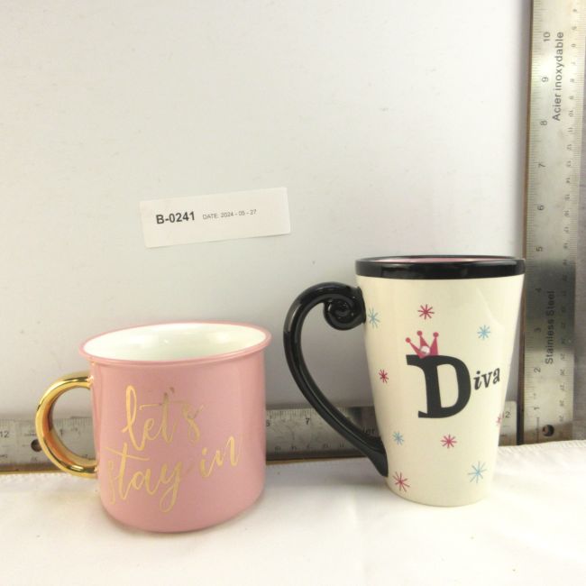 Current Bid: $5.00 [Refresh Price]YOU WILL NEED TO REFRESH THIS PAGE TO SEE UPDATED BID (Log in and this will update automatically) You must LOG IN or REGISTER to see this full page auction listing and bid. Auction is Over Winning Bid Amount: $5.00 **Lot Details: (LOT: B241) - Two brand new coffee/tea/hot chocolate mugs, one says "Damn it feels good to be a Diva" and has bling on the outside, the other pink one says "Let's Stay In". Log in to add this lot to your watch list or place a bid |
