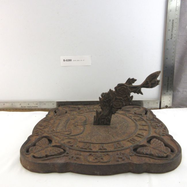Current Bid: $15.00 [Refresh Price]YOU WILL NEED TO REFRESH THIS PAGE TO SEE UPDATED BID (Log in and this will update automatically) You must LOG IN or REGISTER to see this full page auction listing and bid. Auction is Over Winning Bid Amount: $15.00 **Lot Details: (LOT: B280) - Cast Iron Sundial 11". Log in to add this lot to your watch list or place a bid |