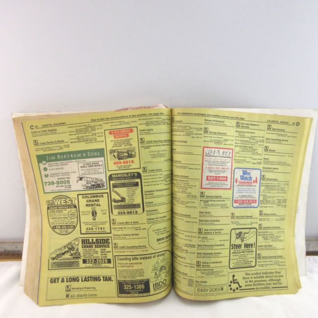 Current Bid: $7.00 [Refresh Price]YOU WILL NEED TO REFRESH THIS PAGE TO SEE UPDATED BID (Log in and this will update automatically) You must LOG IN or REGISTER to see this full page auction listing and bid. Auction is Over Winning Bid Amount: $7.00 **Lot Details: (LOT: B290) - A vintage 1995 - 1996 Bell telephone book for the Midland, Port McNicoll, Victoria Harbour, Barrie etc. area. Almost a quarter century old. In fair condtion for age. Some scuffing, pen marks. Has all pages Log in to add this lot to your watch list or place a bid |
