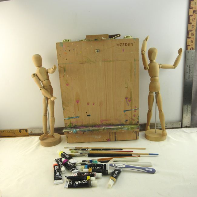 Current Bid: $7.00 [Refresh Price]YOU WILL NEED TO REFRESH THIS PAGE TO SEE UPDATED BID (Log in and this will update automatically) You must LOG IN or REGISTER to see this full page auction listing and bid. Auction is Over Winning Bid Amount: $7.00 **Lot Details: (LOT: B294) - A 14 x 10.5 Wooden Art Easel Box for Painting with Storage Box Sketch Box Table Easel for Student, Professionals or Beginner. Comes with some paints and brushes. Also includes 2 US Art Supply Wooden Drawing Manikin A... Log in to add this lot to your watch list or place a bid |