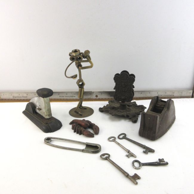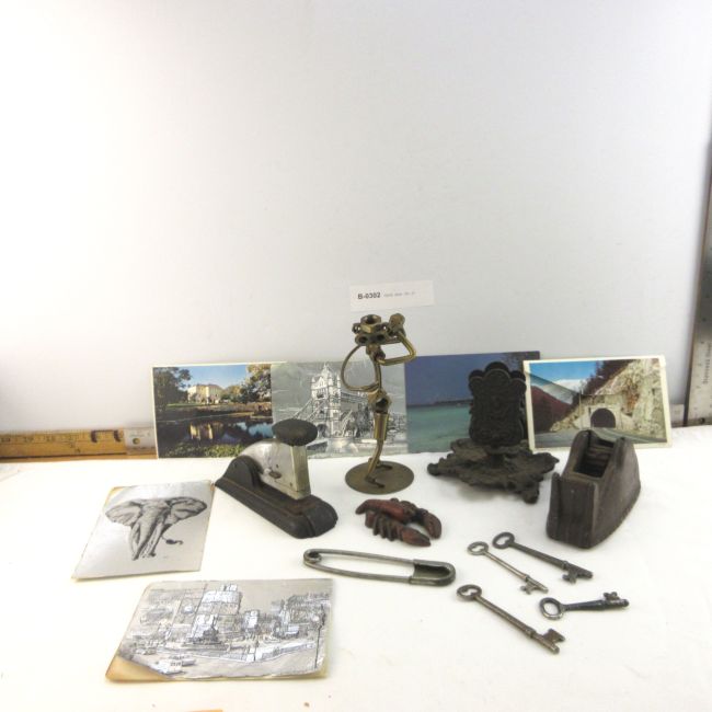 Current Bid: $9.00 [Refresh Price]YOU WILL NEED TO REFRESH THIS PAGE TO SEE UPDATED BID (Log in and this will update automatically) You must LOG IN or REGISTER to see this full page auction listing and bid. Auction is Over Winning Bid Amount: $9.00 **Lot Details: (LOT: B302) - Stationary Items, Stapler, Cello Tape Dispenser, Cast Iron Letter Holder, Plus Nuts & Bolt Figurine, Keys, Lobster & Postcards Log in to add this lot to your watch list or place a bid |