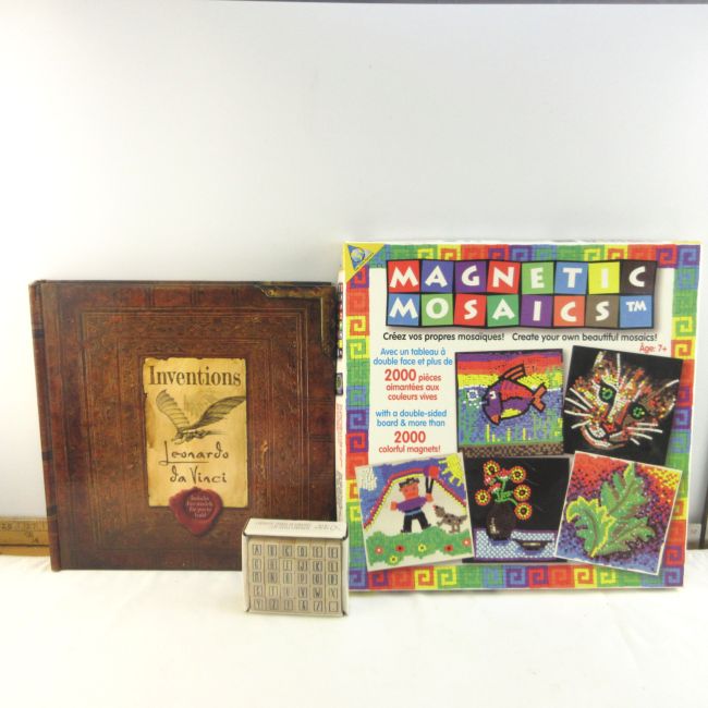 Current Bid: $7.00 [Refresh Price]YOU WILL NEED TO REFRESH THIS PAGE TO SEE UPDATED BID (Log in and this will update automatically) You must LOG IN or REGISTER to see this full page auction listing and bid. Auction is Over Winning Bid Amount: $7.00 **Lot Details: (LOT: B303) - Mosaic Game, Leonardo De Vinci Book, & Printing Set Miniature Log in to add this lot to your watch list or place a bid |
