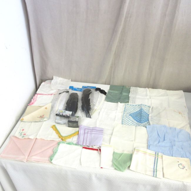 Current Bid: $7.00 [Refresh Price]YOU WILL NEED TO REFRESH THIS PAGE TO SEE UPDATED BID (Log in and this will update automatically) You must LOG IN or REGISTER to see this full page auction listing and bid. Auction is Over Winning Bid Amount: $7.00 **Lot Details: (LOT: B309) - Large Quantity Of Hankies, Plus Feathers & Table Decorations Log in to add this lot to your watch list or place a bid |