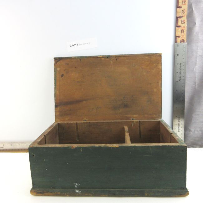 Current Bid: $17.25 [Refresh Price]YOU WILL NEED TO REFRESH THIS PAGE TO SEE UPDATED BID (Log in and this will update automatically) You must LOG IN or REGISTER to see this full page auction listing and bid. Auction is Over Winning Bid Amount: $17.25 **Lot Details: (LOT: B314) - Vintage Green, Pine, Hinged lidded Box 12” X 7.50” X 5” Log in to add this lot to your watch list or place a bid |
