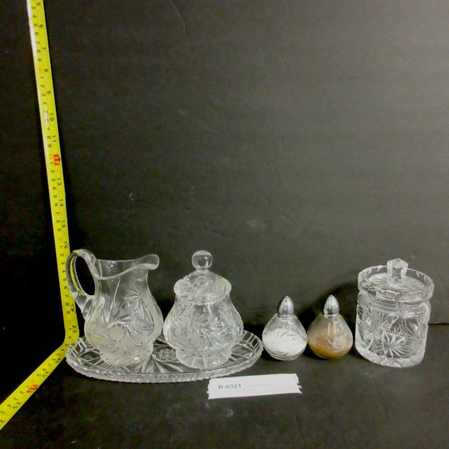 Current Bid: $7.00 [Refresh Price]YOU WILL NEED TO REFRESH THIS PAGE TO SEE UPDATED BID (Log in and this will update automatically) You must LOG IN or REGISTER to see this full page auction listing and bid. Auction is Over Winning Bid Amount: $7.00 **Lot Details: (LOT: B321) - Pinwheel Crystal service set with condiments, cream, and sugar, salt and pepper Log in to add this lot to your watch list or place a bid |