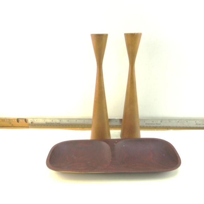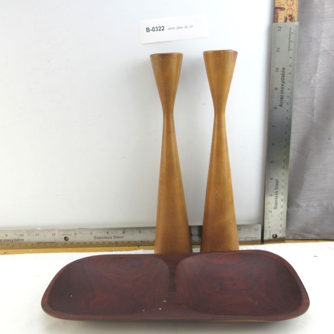 Current Bid: $9.00 [Refresh Price]YOU WILL NEED TO REFRESH THIS PAGE TO SEE UPDATED BID (Log in and this will update automatically) You must LOG IN or REGISTER to see this full page auction listing and bid. Auction is Over Winning Bid Amount: $9.00 **Lot Details: (LOT: B322) - Two vintage candleholders and a nut tray. All wood, could be teak. Log in to add this lot to your watch list or place a bid |