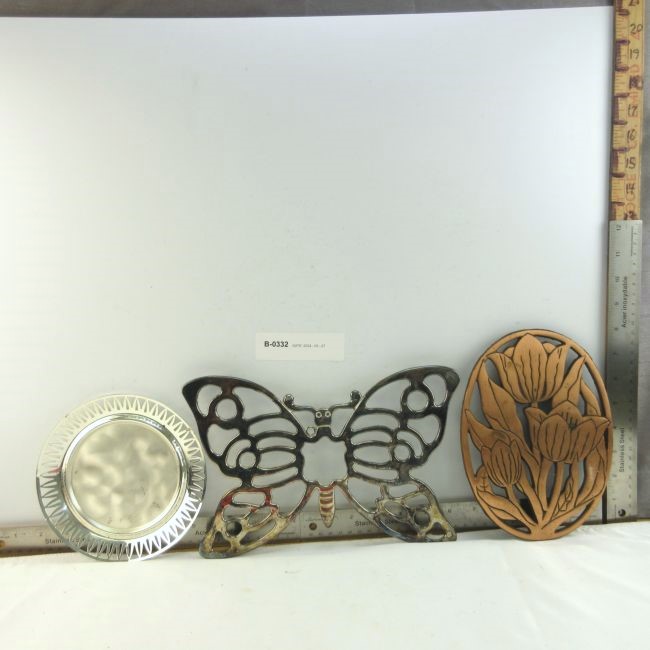 Current Bid: $[Refresh Price]YOU WILL NEED TO REFRESH THIS PAGE TO SEE UPDATED BID (Log in and this will update automatically) You must LOG IN or REGISTER to see this full page auction listing and bid. Auction is Over Winning Bid Amount: $This item did not sell **Lot Details: (LOT: B332) - Lot of two trivets and a small tray, two are in original boxes Log in to add this lot to your watch list or place a bid |