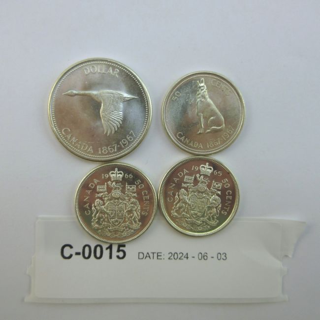 Current Bid: $44.20 [Refresh Price]YOU WILL NEED TO REFRESH THIS PAGE TO SEE UPDATED BID (Log in and this will update automatically) You must LOG IN or REGISTER to see this full page auction listing and bid. Auction is Over Winning Bid Amount: $44.20 **Lot Details: (LOT: C15) - Canada 1967 Silver Dollar in Beautiful Condition. Also, a 1965, 1966 and 1967 Silver Half Dollar in Gorgeous Condition. All Coins are .800 Silver. Log in to add this lot to your watch list or place a bid |