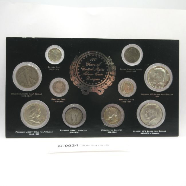 Current Bid: $52.00 [Refresh Price]YOU WILL NEED TO REFRESH THIS PAGE TO SEE UPDATED BID (Log in and this will update automatically) You must LOG IN or REGISTER to see this full page auction listing and bid. Auction is Over Winning Bid Amount: $52.00 **Lot Details: (LOT: C24) - USA – 100th Years of United States Silver Coins. Excellent Large Descriptive Display of 10 Silver Coins ranging from the Early 1900’s to the 1960’s. Many of the Coins show little or no circulation. Log in to add this lot to your watch list or place a bid |