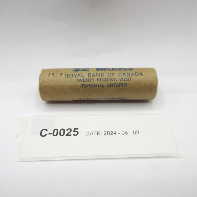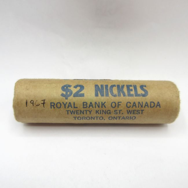 Current Bid: $25.00 [Refresh Price]YOU WILL NEED TO REFRESH THIS PAGE TO SEE UPDATED BID (Log in and this will update automatically) You must LOG IN or REGISTER to see this full page auction listing and bid. Auction is Over Winning Bid Amount: $25.00 **Lot Details: (LOT: C25) - Canada 1967 Sealed Roll of 1967 Nickels. Royal Bank Sealed Roll, Errors? MS-65/66 Plus? Unknown. Log in to add this lot to your watch list or place a bid |