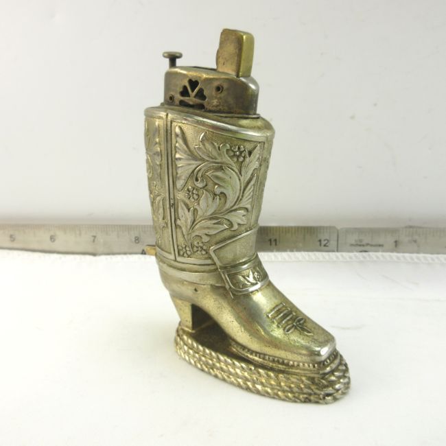 Current Bid: $19.01 [Refresh Price]YOU WILL NEED TO REFRESH THIS PAGE TO SEE UPDATED BID (Log in and this will update automatically) You must LOG IN or REGISTER to see this full page auction listing and bid. Auction is Over Winning Bid Amount: $19.01 **Lot Details: (LOT: C30) - Vintage Cowboy Boot lighter , made in Occupied Japan Log in to add this lot to your watch list or place a bid |