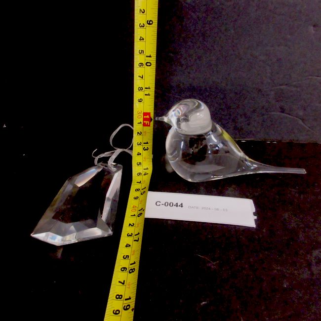 Current Bid: $9.00 [Refresh Price]YOU WILL NEED TO REFRESH THIS PAGE TO SEE UPDATED BID (Log in and this will update automatically) You must LOG IN or REGISTER to see this full page auction listing and bid. Auction is Over Winning Bid Amount: $9.00 **Lot Details: (LOT: C44) - Blown Glass Clear Bird Figurine with hanging Crystal Ornament Log in to add this lot to your watch list or place a bid |
