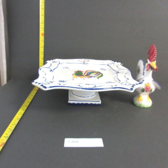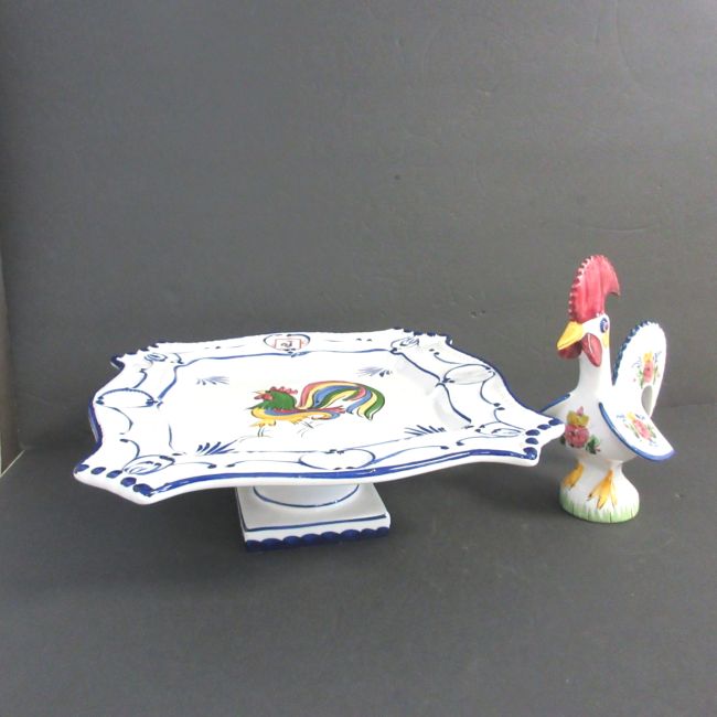 Current Bid: $21.99 [Refresh Price]YOU WILL NEED TO REFRESH THIS PAGE TO SEE UPDATED BID (Log in and this will update automatically) You must LOG IN or REGISTER to see this full page auction listing and bid. Auction is Over Winning Bid Amount: $21.99 **Lot Details: (LOT: C59) - Beautiful dessert or cake footed tray. It is 4.25” high by approximately 12” X 12” . Plus, an 8.5” tall matching Rooster figurine. Both are hand painted, numbered and made in Portugal. Great condition. Log in to add this lot to your watch list or place a bid |