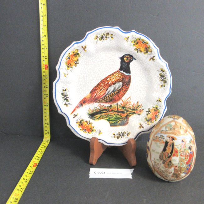 Current Bid: $5.00 [Refresh Price]YOU WILL NEED TO REFRESH THIS PAGE TO SEE UPDATED BID (Log in and this will update automatically) You must LOG IN or REGISTER to see this full page auction listing and bid. Auction is Over Winning Bid Amount: $5.00 **Lot Details: (LOT: C63) - A vintage 6” tall cloisonne Japanese egg. Nicely decorated. Plus, a vintage 10” Lami Modele Depose melamine plate made in, Italy. Pheasant with the crackle look. Dinner plate or wall hanging. Condition is very... Log in to add this lot to your watch list or place a bid |