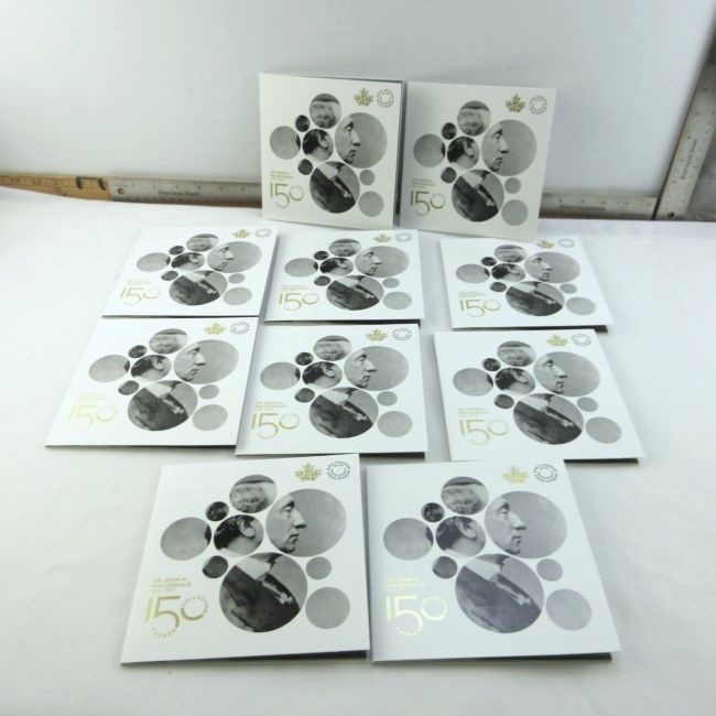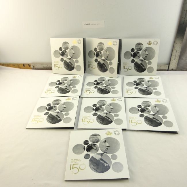 Current Bid: $32.00 [Refresh Price]YOU WILL NEED TO REFRESH THIS PAGE TO SEE UPDATED BID (Log in and this will update automatically) You must LOG IN or REGISTER to see this full page auction listing and bid. Auction is Over Winning Bid Amount: $32.00 **Lot Details: (LOT: C82) - 2015 Sir John A Macdonald 200th Anniversary Toonies. Set of 10 uncirculated, untouched toonies in commemorative Canada 150 Collection holders (That is 10 x $2.00, so $20 from the coins alone) Log in to add this lot to your watch list or place a bid |