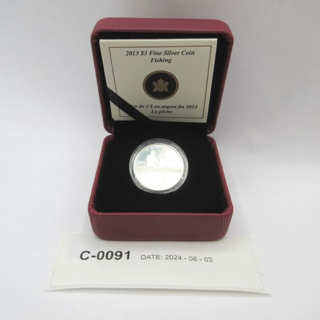 Current Bid: $27.00 [Refresh Price]YOU WILL NEED TO REFRESH THIS PAGE TO SEE UPDATED BID (Log in and this will update automatically) You must LOG IN or REGISTER to see this full page auction listing and bid. Auction is Over Winning Bid Amount: $27.00 **Lot Details: (LOT: C91) - 2013 $3 Fine Silver .9999 Coin RCM Fishing. Clamshell, COA and beauty box. Log in to add this lot to your watch list or place a bid |