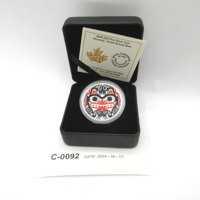 Current Bid: $80.09 [Refresh Price]YOU WILL NEED TO REFRESH THIS PAGE TO SEE UPDATED BID (Log in and this will update automatically) You must LOG IN or REGISTER to see this full page auction listing and bid. Auction is Over Winning Bid Amount: $80.09 **Lot Details: (LOT: C92) - 2020 $20 Fine Silver Coin .9999 RCM - Haida Grizzly. Clamshell, COA and beauty box. Log in to add this lot to your watch list or place a bid |