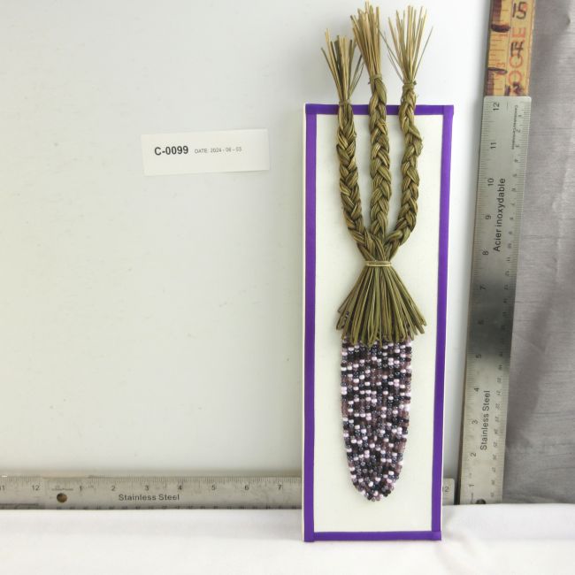Current Bid: $18.44 [Refresh Price]YOU WILL NEED TO REFRESH THIS PAGE TO SEE UPDATED BID (Log in and this will update automatically) You must LOG IN or REGISTER to see this full page auction listing and bid. Auction is Over Winning Bid Amount: $18.44 **Lot Details: (LOT: C99) - Indigenous blue corn beadwork. This handcrafted piece by Candace Snook from the Mohawk of Kahnawake is strung with glass beads and topped with three braided strands of 'corn husk' sweetgrass. Log in to add this lot to your watch list or place a bid |